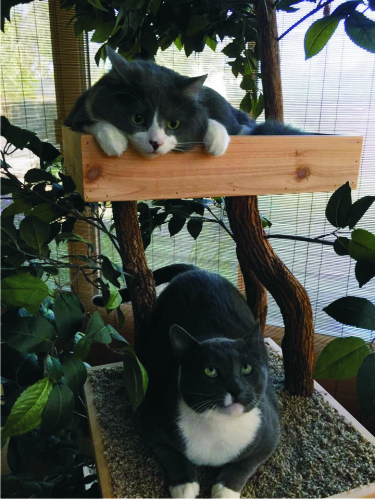 ![]() | Hi Joe and Shelley-Thank you very much. The tree house was very easy to assemble. I really appreciated the craftsmanship and how well everything was packed and easy to identify. Not to mention, it is one of the nicest looking cat tree houses. I find most cat tree houses or condos not very attractive and I looked for awhile until I found your website. My two boys, Henry and Alistair loved the tree immediately. However, they both love the top platform the best. Hmmm...maybe I need to buy another one. Yes- they are spoiled. Attached are pictures of them both enjoying the tree house. Regards, Kristin ![]() Date of Posting: 27 March 2016 Posted By: Kristin Castro Valley, CA |