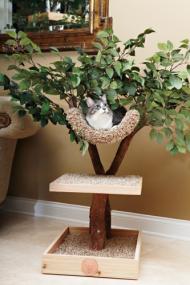 The Seedling (ex-small) Tree House is purrfect for your special cat. Tree House gives your cats the room to play, jump, explore and sleep. Crafted of wood, cedar, plush carpeting and synthetic silk leaves, this house brings out the kitten in you cat. Not only is Tree House an interactive play center for your cats, it is beautifully constructed blending in with your home.